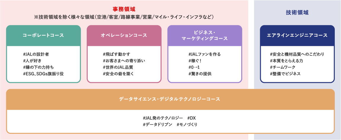 業務企画職には、自ら切り開くキャリアでの専門性を活かして、新しい価値の提供やJALグループの経営を担う人財として活躍することが期待されます。